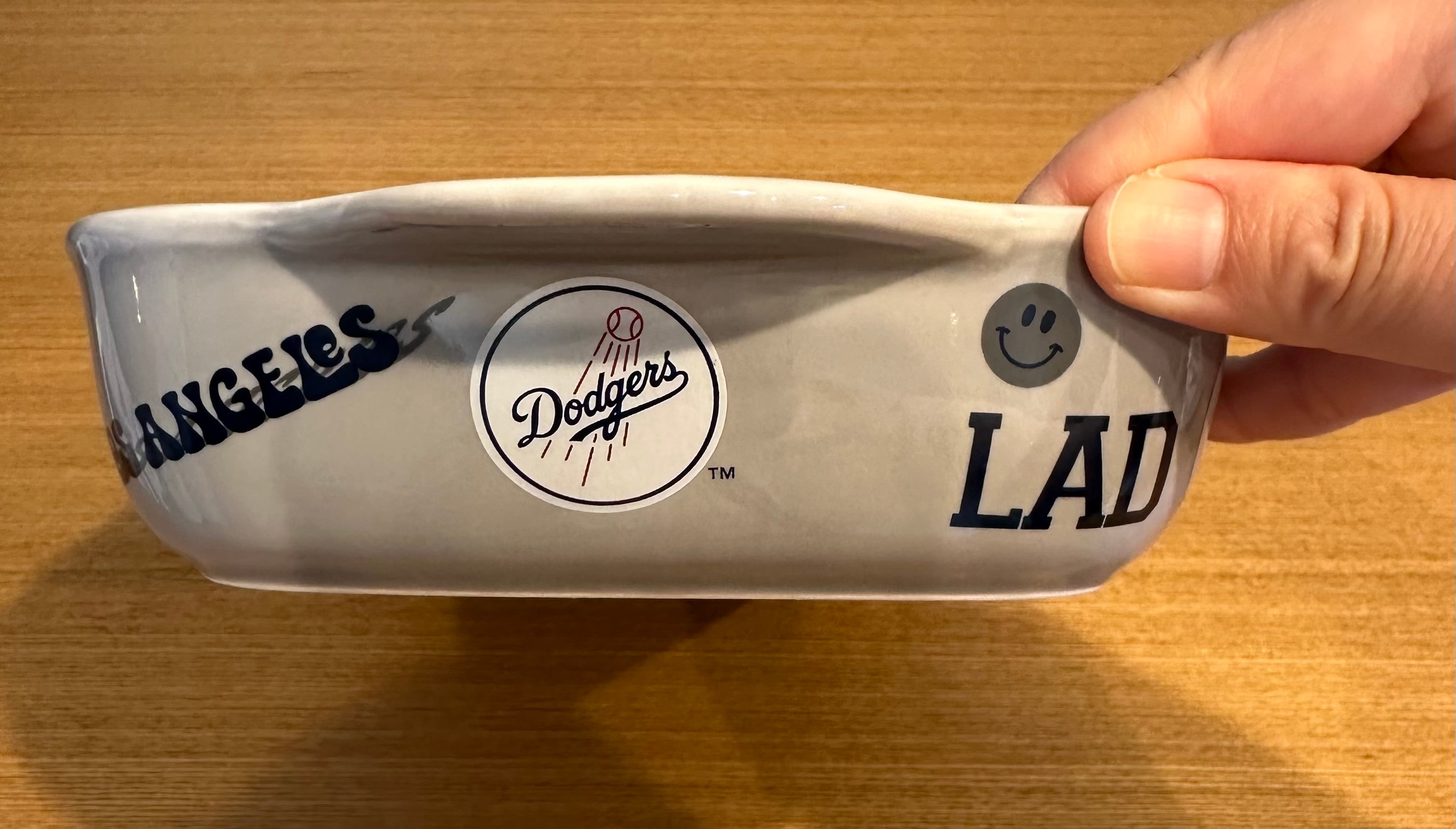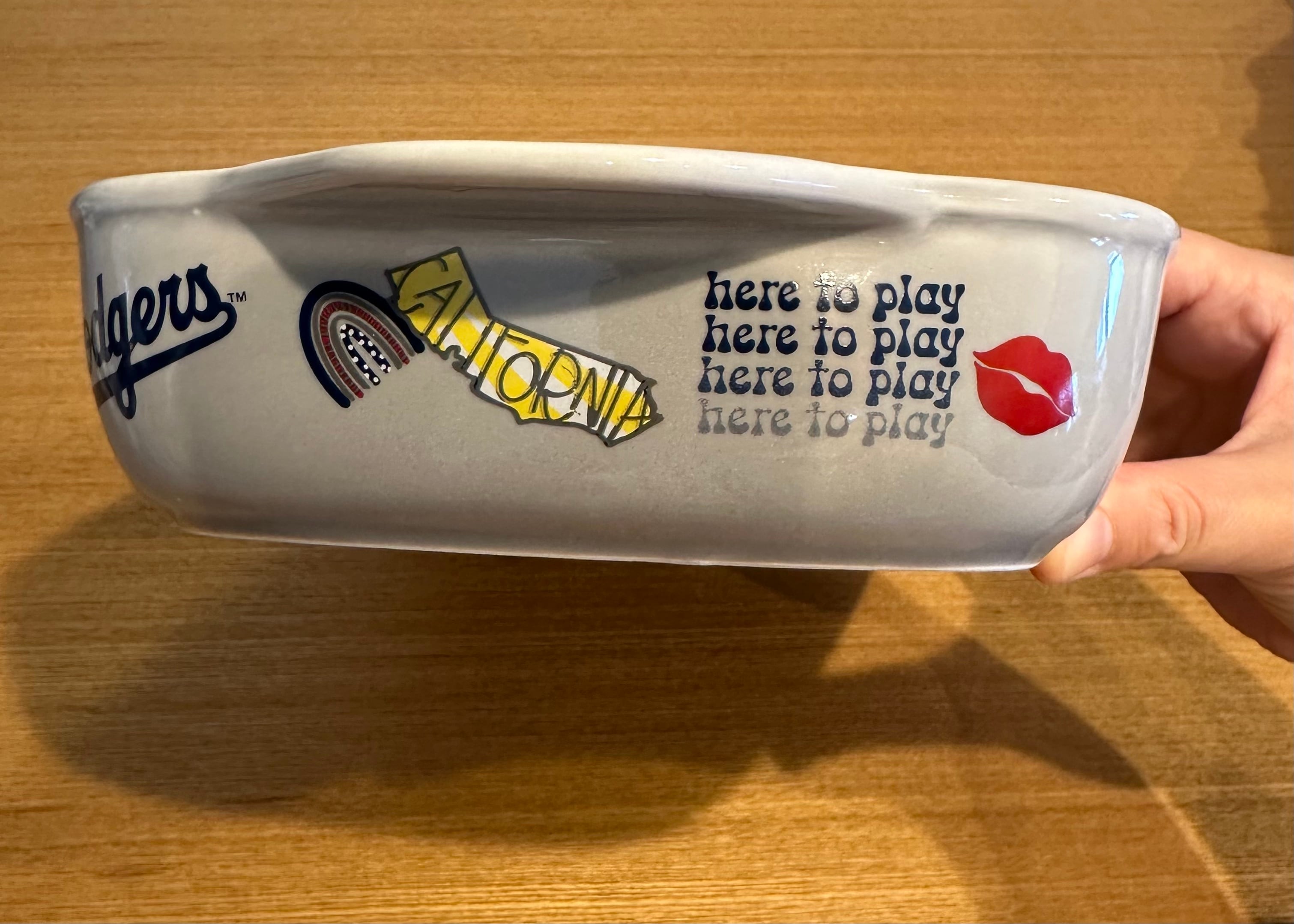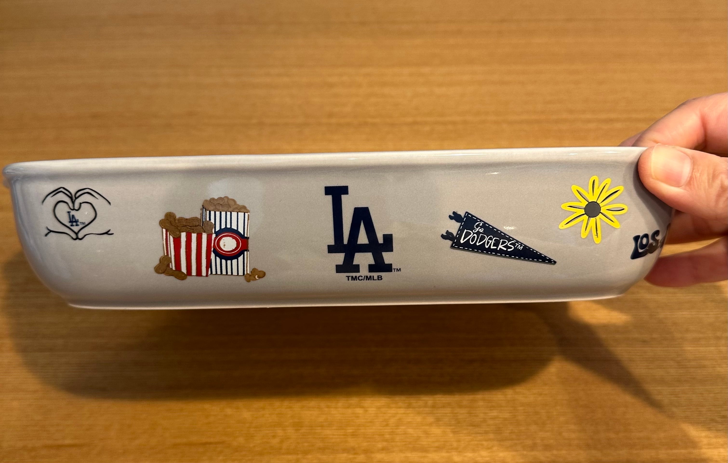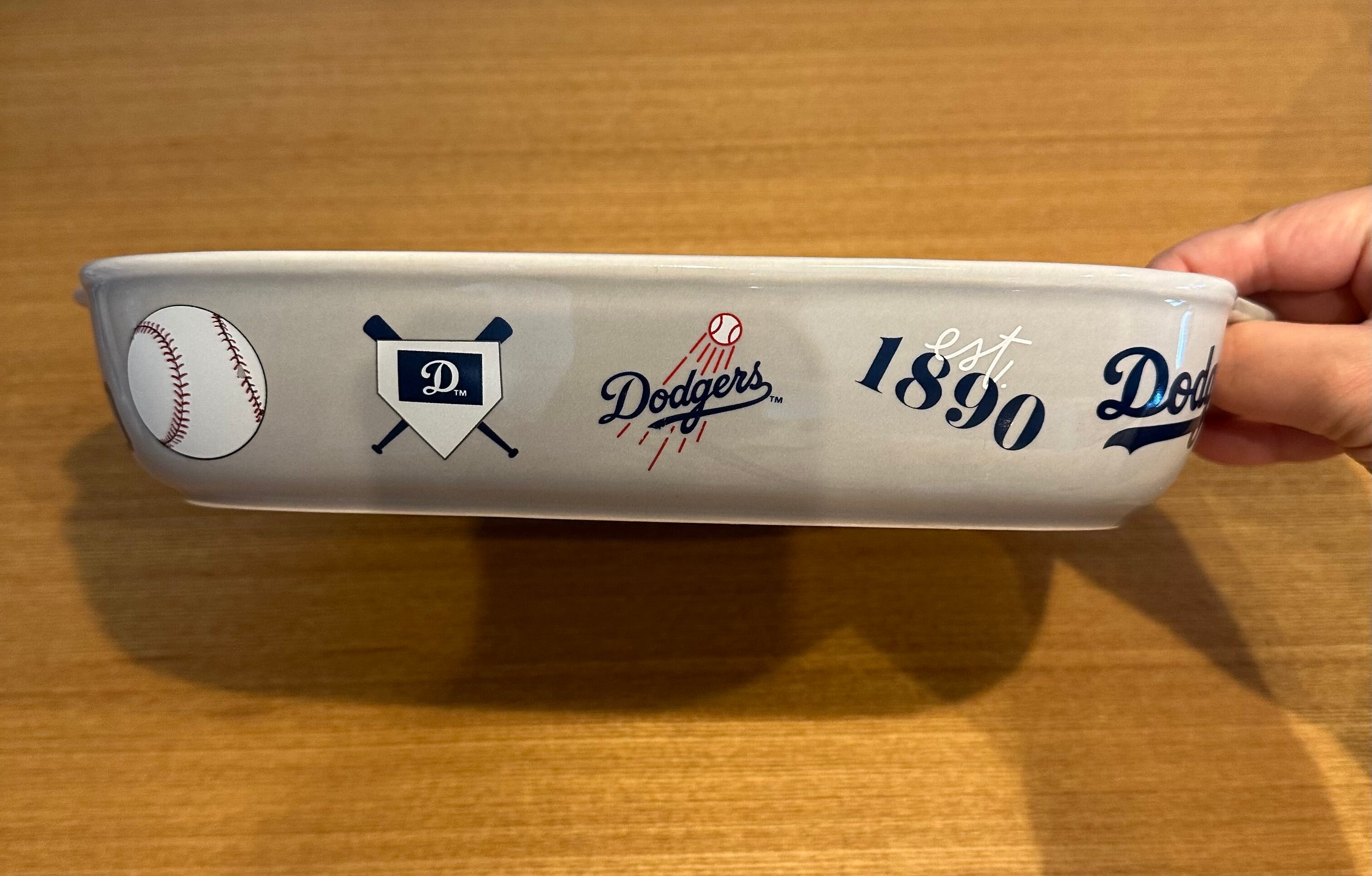 ドジャースイメージのイラストが周囲に入っているオーブンにも使えるお皿。